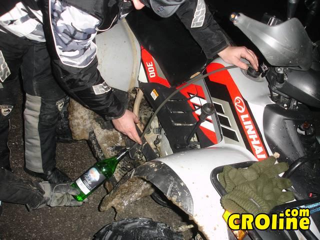 Ide Grizzly sam niz brijeg, za njim trči Nino, trči Joker, k'o u filmu, malo lijevo, malo desno (kažu da je bilo bolje no u "Maratoncima…")…a CROline ekipa, cijela birtija (i kuhari) izašla van i umiru od smjeha, valjaju se…sreća nakon jedno 100ak metara Grizzly se zaustavlja u vinogradu na žici, a ipak motor je dosta kočio tak da je udar bio nježan i na ATVu nikakvih oštećenja…